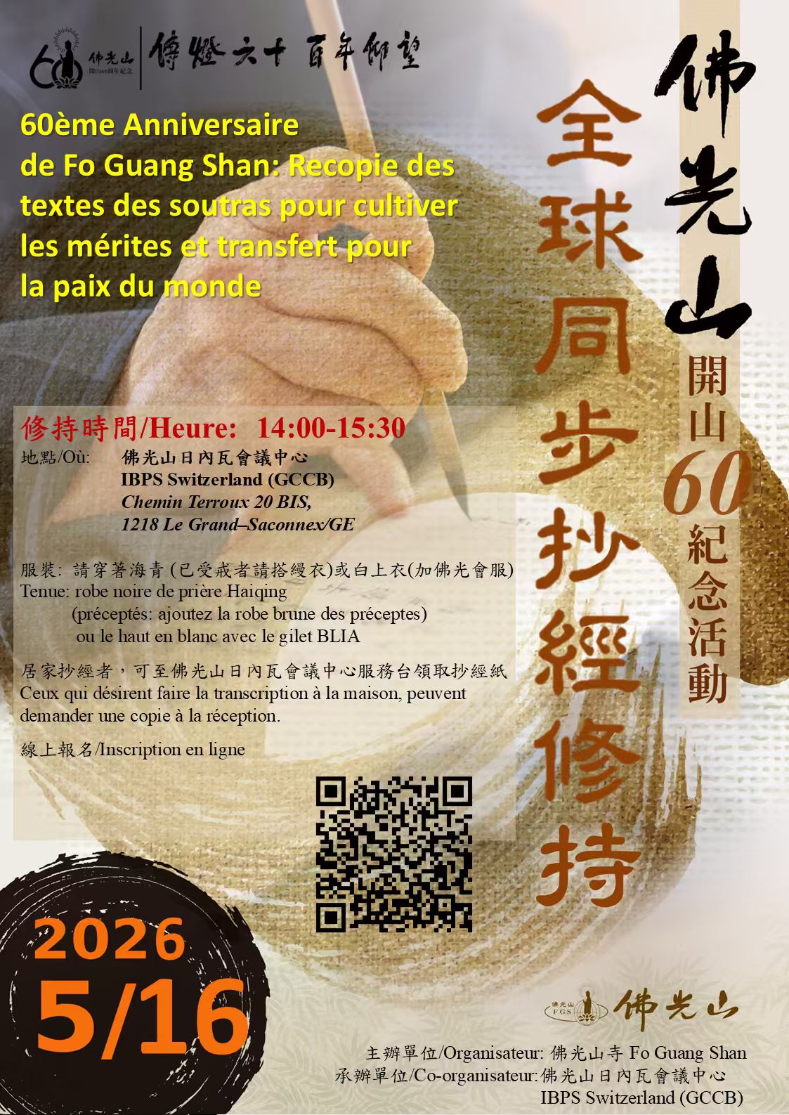 Le centre GCCB (Genève – Centre de conférences bouddhiste) a été établi en 2006 et situé au Grand-Saconnex, dans le canton de Genève. Il se trouve à 10 minutes de l’aéroport de Genève et accessible facilement par les transports publics. GCCB est l’une des 200 branches mondiales du monastère de Fo Guang Shan à Taiwan, fondé par le Vénérable Maître Hsing Yun, qui préconise le Bouddhisme Humaniste.